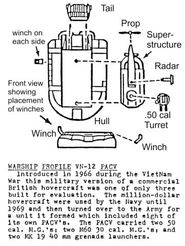 Patrol Air Cushion Vehicle "hovercraft". The pack comes with a cast metal prop. (The photo shows a "prop" circle cut from the blister pack by the modeler.)